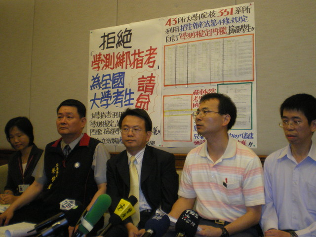 立法委員蔡錦隆指出,今年2月1日、2日為大學學測,7月1日至3日為大學指考。大學學測約有15萬考生參加,成績做為申請大學的依據,若考生學測成績不理想,申請不到喜歡的系所,仍有五個月的時間努力,在7月的大學指考中獲得好成績,考進理想的學校。但是,今年卻有43所大學院校,351個系所利用招生辦法第4條規定,自訂「學測檢定門檻」篩選學生,這些系所在招生簡章中訂出「頂標」、「前標」、「均標」、「後標」、「底標」的學測標準,若學生在2月的學測考試中因病或其他原因未參加,或學測成績不佳,即使在7月的指考中獲得好成績,仍將喪失進入這些系組的資格。