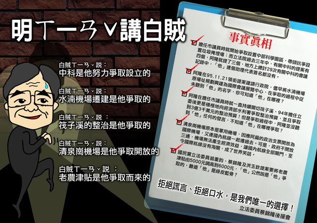 很多人不知道 這些政績是誰做的 但是阿隆很清楚 因為阿隆都有親自參與 所以 當阿隆知道有人在講白賊時 阿隆心裡很不痛快 平時不關心地方 選舉時就打人家的服務搶過來當自己的 又用宣傳車到處去騙選民 我把這種人稱為是 白賊政客 因此 讓大家知道 他講那麼多白賊 不要再被他騙了!!