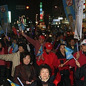 昨晚,蔡錦隆總部舉辦的造勢遊行,是以嘉年華歡樂形態進行,各路隊彷如競相pk,彼此比熱鬧、比創意,除了發動支持者熱情參與外,都安排有炒熱氣氛、或吉祥討喜的電音三太子、米奇、米妮人偶、跳加官仙童助陣,大陣仗地遊街拜票,「蔡錦隆凍蒜」、「馬英九凍蒜」聲浪此起彼落,與過往人車互相呼應,快樂向前行。