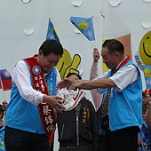 今天一連趕八場活動的立法院長王金平,專程到台中為蔡錦隆站台。他說,蔡錦隆表現優秀,在國民黨創造最資淺黨鞭紀錄,相當不容易。王院長還說,蔡錦隆問政一樣優秀,獲公督、財督評鑑是第一名立委,這是台中人共同的光榮,立委不超過三人獲此殊榮。他讚稱台中人眼睛雪亮,才能選出如此優秀立委。接著王院長親授戰旗,由競選總部主任委員張宏年接受,期許旗開得勝 。