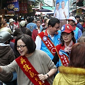 選舉倒數計時,人多的市場成為候選人搶攻票倉。國民黨提名副總統候選人吳敦義夫人蔡令怡,與台中市第四選區立委候選人蔡錦隆,今天聯袂啟動菜市場拜票行動,由掃水湳市場出發,爭取支持。一路有婆婆媽媽搶著和他們握手,還有攤販高舉勝利手勢,高喊「馬英九凍蒜!」「吳敦義凍蒜1」「蔡錦隆凍蒜」,激昂情緒感染所有人。