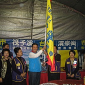 錦隆親自授戰旗,李明昌在300多名會員高聲大喊「蔡錦隆凍蒜」聲中,宣示將發動會兄、會姐大力拉票助選,